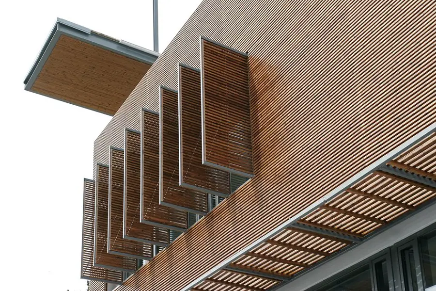 Eficienta energetică. Materialele naturale izolante, precum lemnul, creează o barieră naturală împotriva căldurii și frigului, iar un design concentrat pe această idee poate minimiza consumul de energie. Clădirile cu fațade de lemn reacționează rapid din punct de vedere termic, ceea ce înseamnă că pentru aceste clădiri este nevoie de mai puțină energie pentru a menține casa la o temperatură confortabilă. Împreună cu o izolație corespunzătoare a pereților exteriori, placarea cu lemn poate îmbunătăți considerabil rezistența termică chiar și la clădirile vechi.