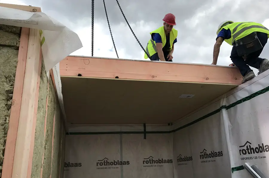 “A fost nevoie de doar câteva zile de pregătire a șantierului. Construcția pereților în fabrică a durat trei zile. Am venit pe șantier înainte cu două zile să pregătim stâlpii, să pregătim placa, să pregătim terenul. Montatul casei a durat o singură zi. Seara era acoperișul pus.” povestește Ionuț Merlușcă.
