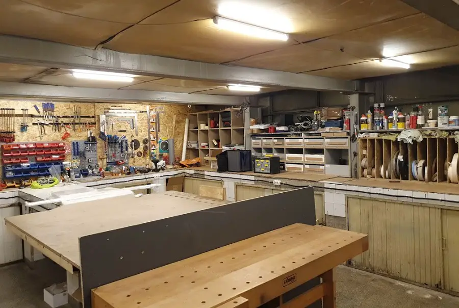 Cu CNC-ul au făcut și panouri decorative. Mi-au arătat urmele lăsate de ultimul – un perete placat cu hexagoane de diferite culori. Se potrivesc perfect, aproape că nu se vede linia de îmbinare. “Făcute cu alte scule nu s-ar fi potrivit niciodată atât de bine”, spune Iulian.
