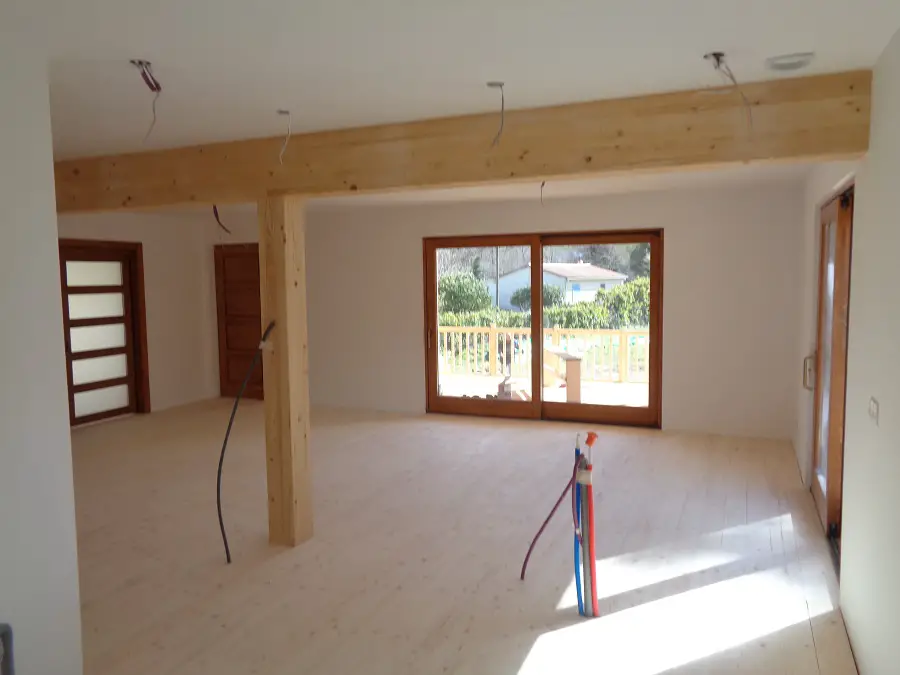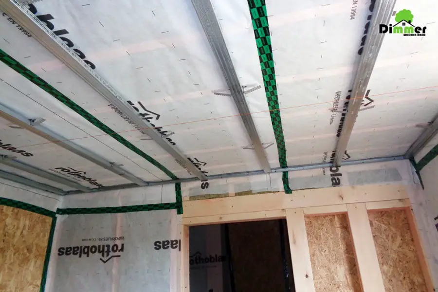 După “asamblarea” casei, s-a montat la exterior un alt strat de izolație de vată bazaltică de 60 mm, care a fost ulterior tencuită. La interior, placarea s-a făcut cu plăci de gips-carton. Toate aceste operații pe șantier au durat în total 30 de zile. Timpul scurt de lucru pe șantier este unul dintre marile beneficii ale unei case pe structură de lemn. Cum bună parte dintre operații se fac în fabrică, se elimină timpii de așteptare obligatorii în cazul construcției cu alte materiale, iar șantierul este mult mai curat, cantitatea de deșeuri fiind foarte mică.